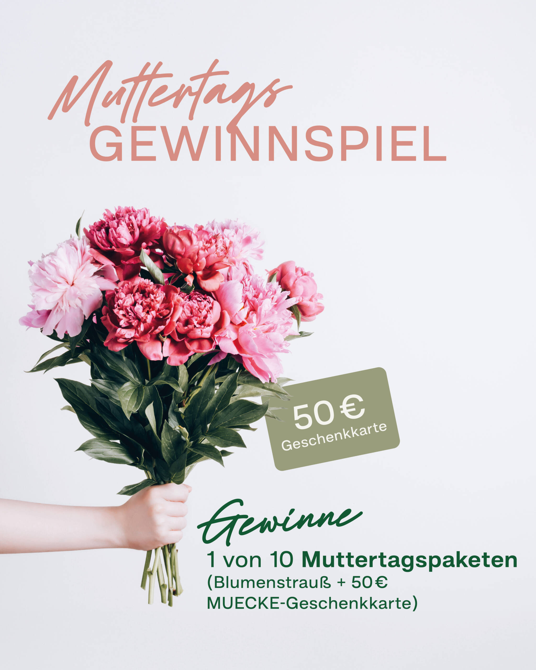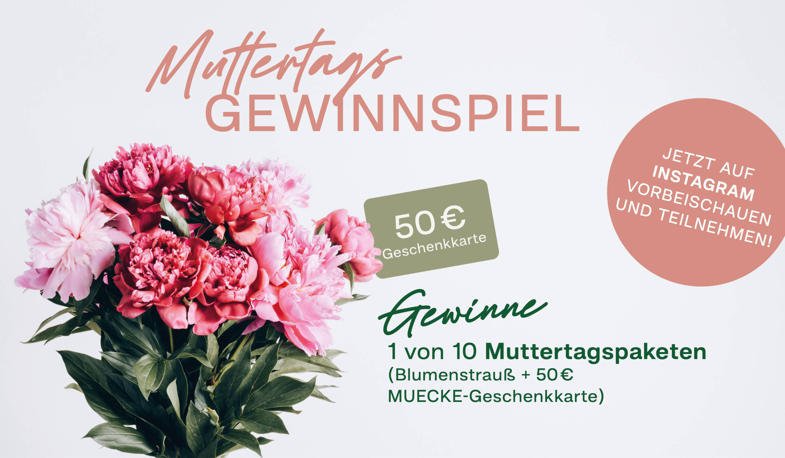Gewinne 1 von 10 Muttertagspaketen (bestehend aus einem Blumenstrauß & einer 50 € – MUECKE-Geschenkkarte) in unserem aktuellen Instagram-Post.