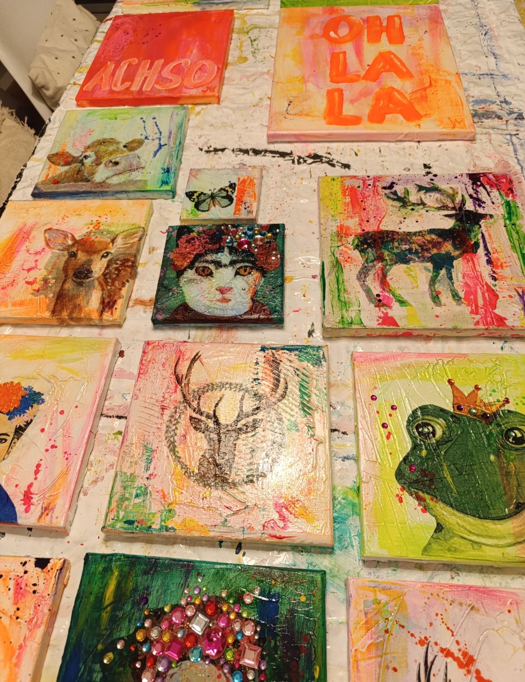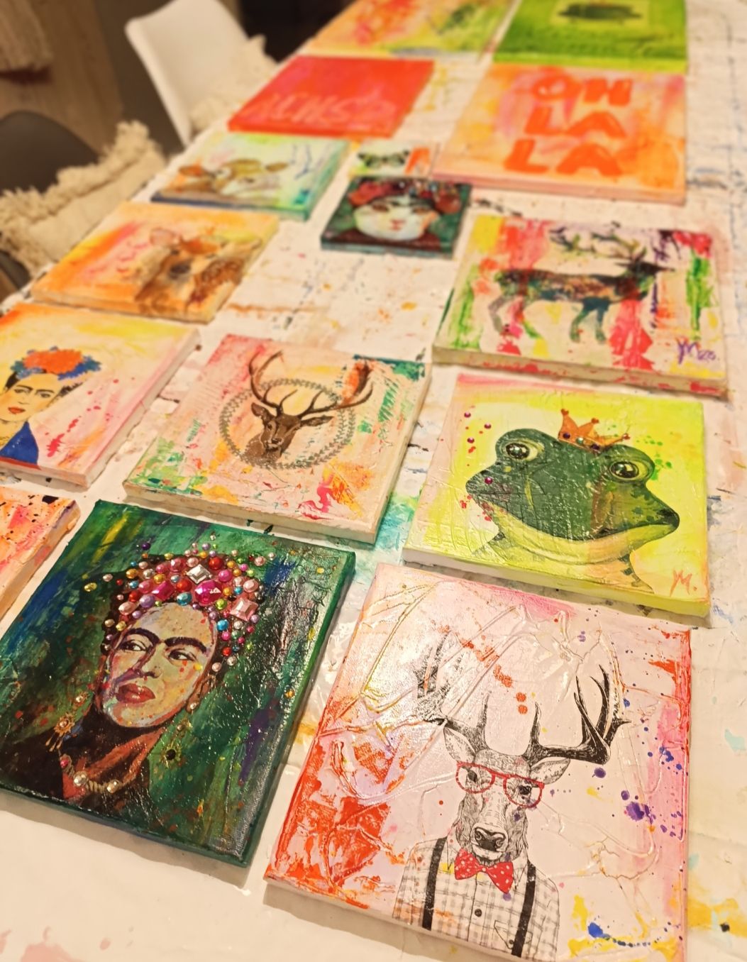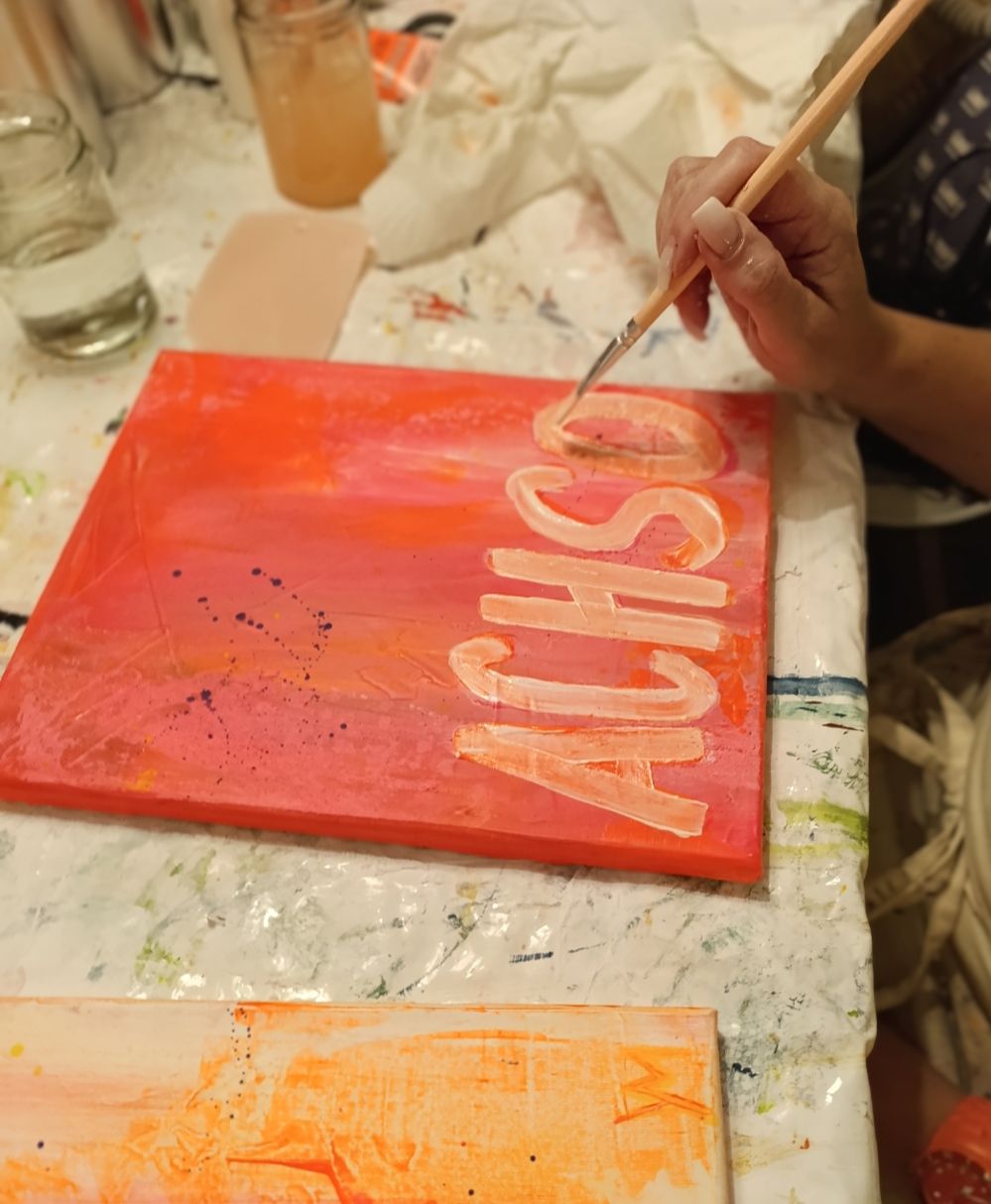 Wir arbeiten mit Acrylfarben und Serviettentechnik, probieren aus, schichten, kleben und malen – ganz ohne Druck oder Regeln. Du brauchst keine Vorkenntnisse, nur Lust auf Kreativität.