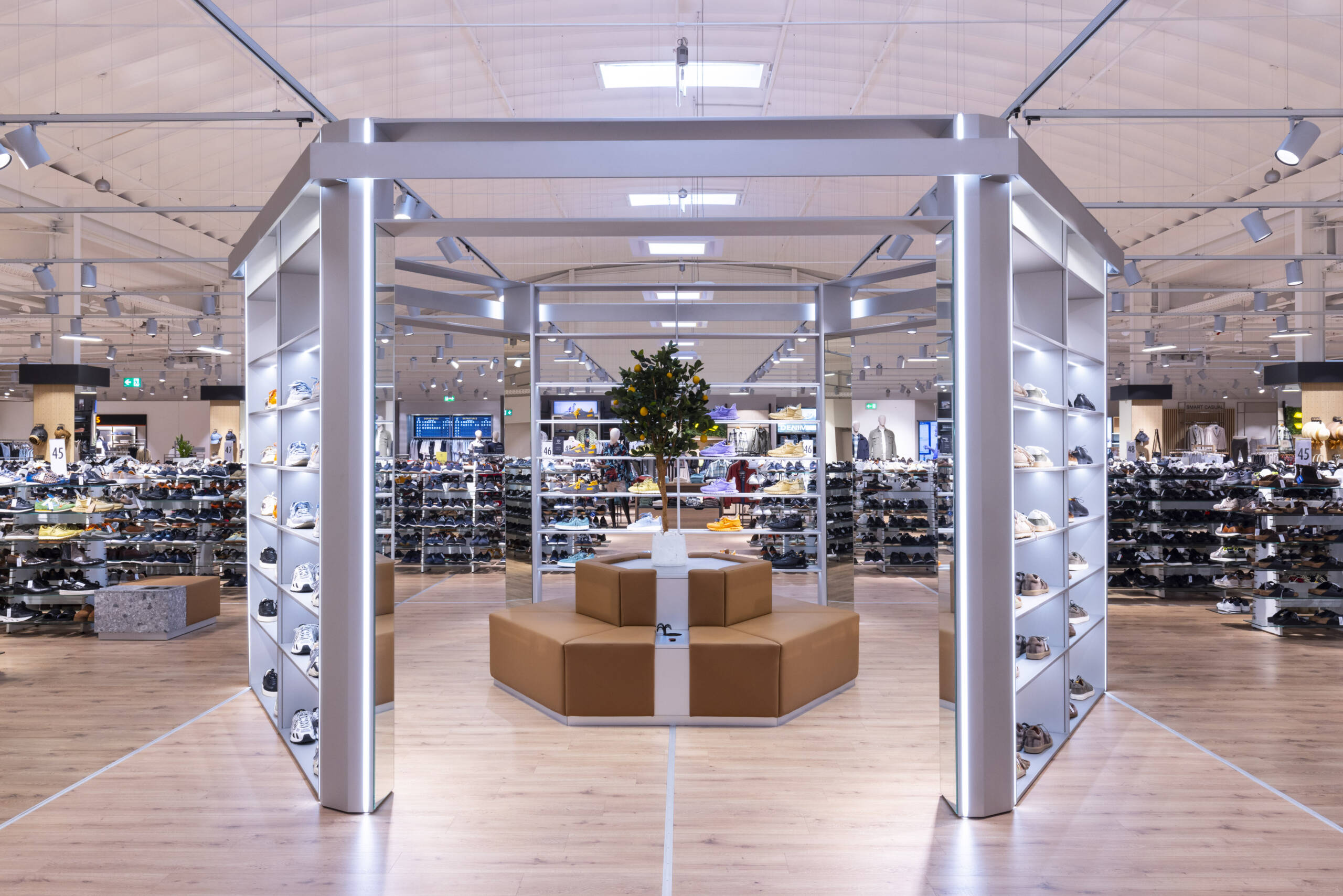 Direkt nebeneinander: der neue, urbane Store mit Trend-Labels, Sneakern, sportlichen Styles und Mode für Kids – und das modernisierte Stammhaus mit hochwertigen Marken wie Marc Cain, Boss Orange oder Mos Mosh, eleganten Schuhen und Looks für jeden Anlass.