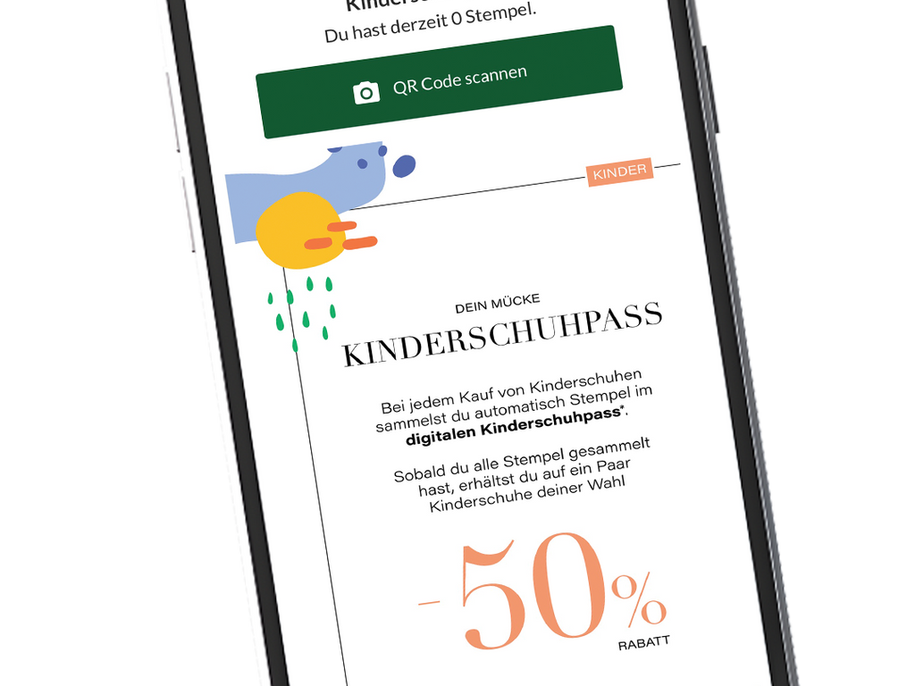 *Der Kinderschuhpass ist gültig bis zum vollendeten 14. Lebensjahr und ist nicht kombinierbar mit anderen Rabattaktionen. Stempel können ausschließlich bei Käufen in MUECKE Stores und Outlets gesammelt werden. Der Onlineshop ist ausgeschlossen.